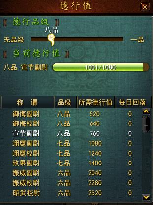 每当总德行值达到一定数量,就可以获得新的称谓和新的成就(未达成前,成就为隐藏)