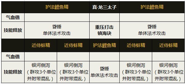 l 要点说明: A:怪物的混乱是可以抗住的,但是就目前来说,10法防精修+生存盘子+3000法防+奇 门遁甲,都会有95%以上几率被混乱,所以想抗混的同学自己衡量下 B:护法鲤鱼精是有复活状态 C:BOSS在气血降低到一定程度后,会触发镇海诀技能 D:镇海诀:每回合减少当前气血的10%,并增加在BOSS身上。 E:重压打击:防御降低30%,持续三回合。攻击伤害参考:8000+(三回合叠加降低90%的防御,档也可能被秒杀) l 通关攻略:利用隐身+复活状态的宝宝打尸体战,只要杀死4个蚌精基本上就可以通关。 l 注意事项:个人认为是盘古难度最大的一关,需要非常严谨的操作与配合,只要有一步操作错误,基本可以宣布失败。