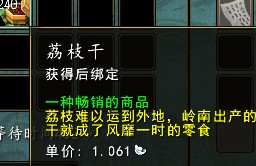零钱买荔枝干注(高于1800不要买)然后带内传送岭南镖师在B商人不远.桥旁边进入淮南道6.到淮南道后去坐标(1101.1050)