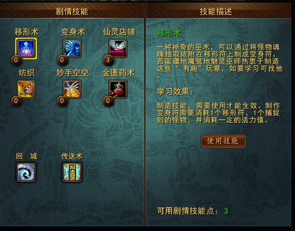 在这里剧情技能有多种选择,下面我们在 进一步介绍下几个剧情技能