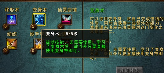 制作出的变身符给有变身术技能的玩家,只有一使用就能变成相应的角色样子,而且还带有特殊的属性加成哦!是一个很搞笑的技能。