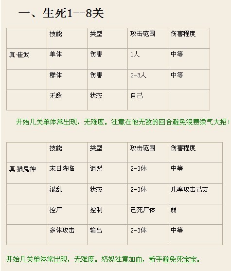 生死劫作为第一个难度活动,其攻略实在无法千篇一律,因为根据人物等级、技能、流派、修炼、装备档次、队伍配置、宠物特点等众多指标息息相关,因此,所谓攻略自然没法像单机一条线走到底,这是多人在线游戏要素多元化的必然结果。不同的配置、不同的宠物、不同的装备势必存在不同的通过过程和结果,因此才给我们留下更多不同经验和有趣的游戏经历~