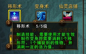 制作出的变身符给有变身术技能的玩家,只有一使用就能变成相应的角色样子,而且还带有特殊的属性加成哦!是一个很搞笑的技能。
