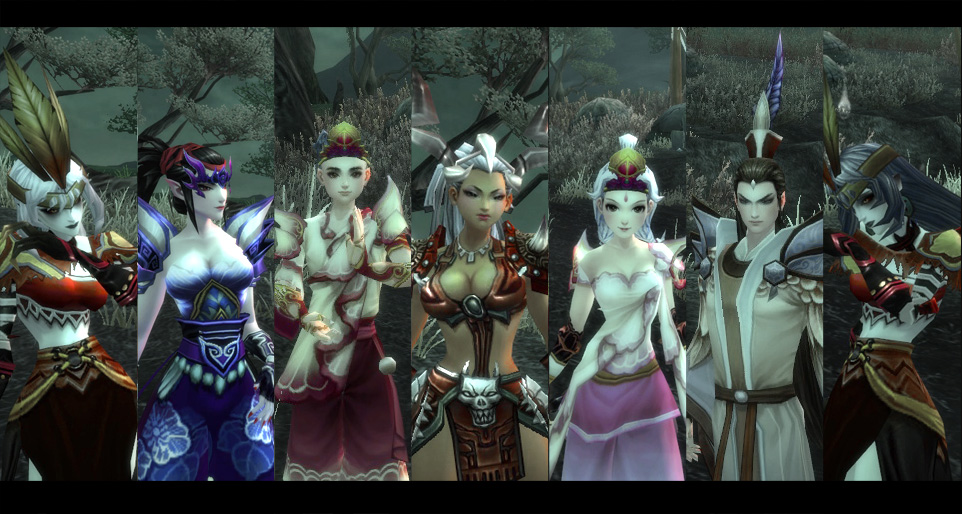 别说我浪费资源哦,我相信很多人都领了不下10个YY贵族礼包给小号们凑绝版套装。我还有4个小号没抽到粉彩穿不上时装。先揪7只出来晒晒。哼哼。