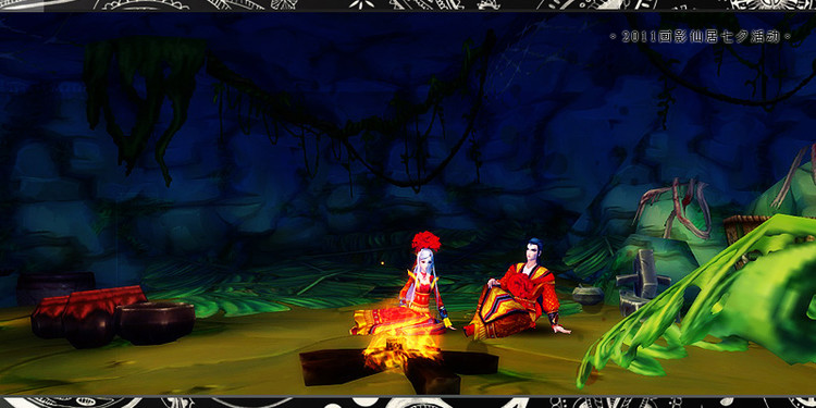 -我牵着你走近篝火旁坐下,轻语。