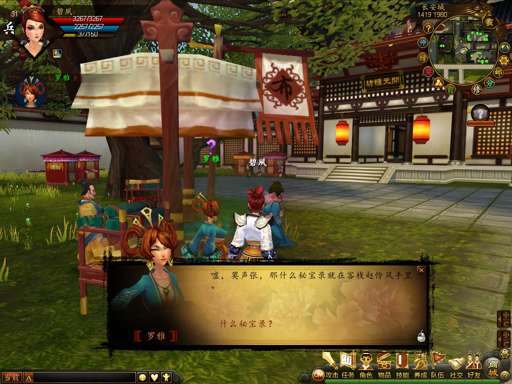 31级晶石引导任务: 玄天风云录 领取地点:关内道长安城(1419 1980) 任务领取人:罗雅 领取要求:≥31级 剧情简介:一切都是秘宝录惹的祸,自从你在长安城罗雅那里知道了秘宝录,就看到了穷追不舍为宝藏痴狂的河洛四小玉面侠,更见到了沙场血剑幻化的玄天剑灵。在寻宝的历程中,或许你会想要知道:来自四气城卓绝的法宝探测仪的,带来的究竟是什么…… 任务涉及的人物:罗雅、赵怜风、钱怜花、赵怜风的秘宝录、邱思明、聂子玉、孙怜雪、李怜月、玄天剑灵、巨衍、萧启顺。 剧情任务的奖励以经验为主,获得当前等级段升级所需大部分经验奖励及相应召唤兽经验奖励。